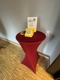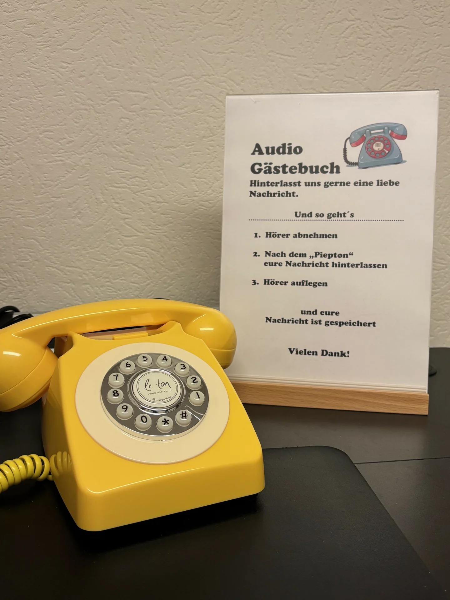 Was ist ein Audiogästebuch? Die Gäste können auf einem Retrotelefon ihre Sprachnachricht hinterlassen.