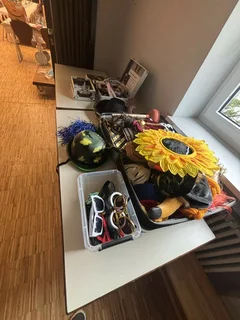 Ein Tisch/Ablage für die Requisiten.